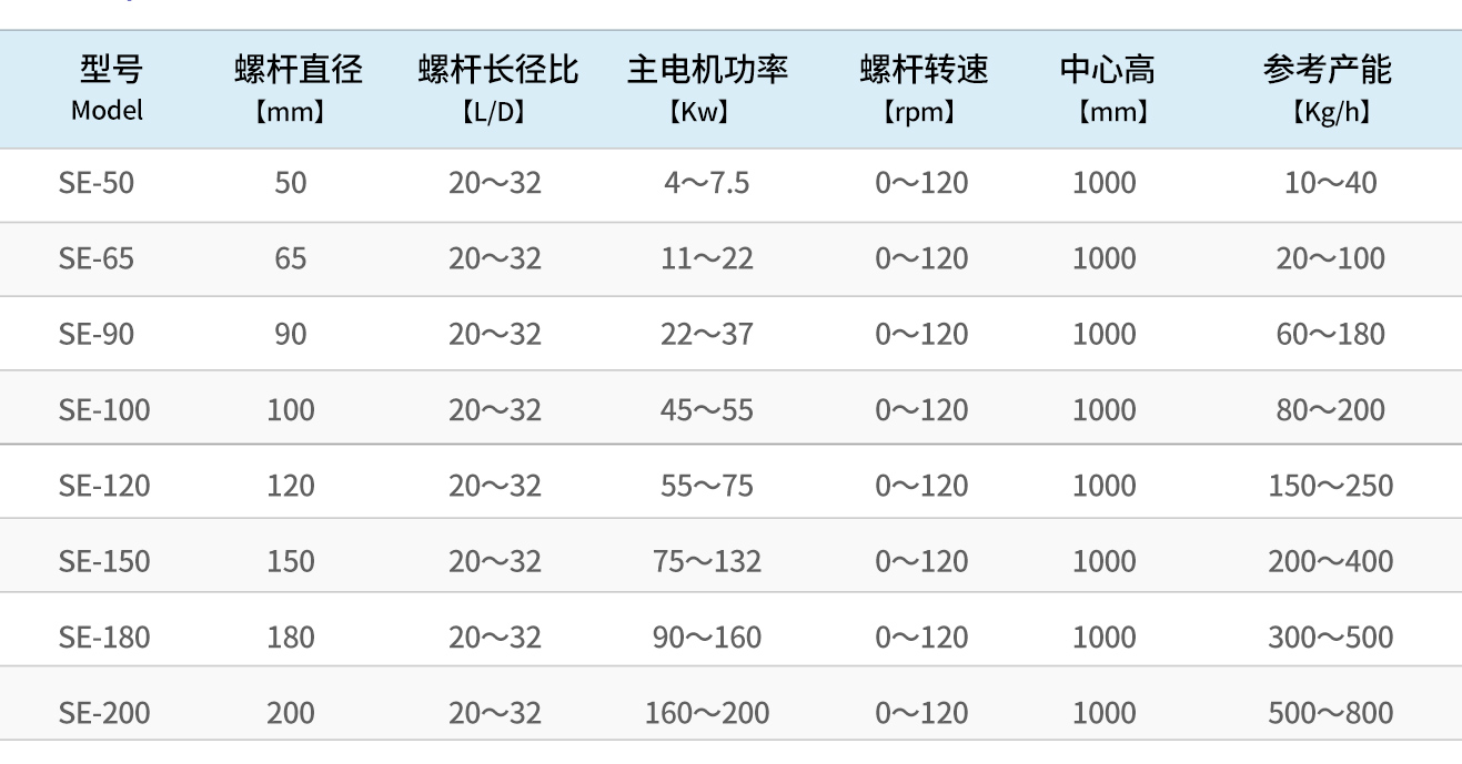 SE series Single screw extruder is equipped with smooth or grooved feeding barrels with L/D from 8 to 32.  It is mainly used for processing melt with venting or vacuum functions for recycling or products extrusion, typically including polyolefin and engineering recycling, engineering plastic direct extrusion of films, sheet, plates, pipes, and profiles, such as PET, PA, PBT, ABS PC.