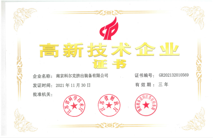 科爾克經(jīng)歷十多年兢兢業(yè)業(yè)發(fā)展,埋頭研究雙螺桿制造技術(shù)的跨越提升,獲得14項專利證書,并于2018年首次獲得高新技術(shù)企業(yè)證書。至今年已是第四年。