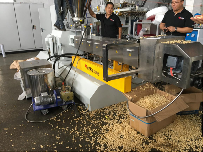 科爾克雙螺桿擠出機(jī)為多種食品和寵物食品的擠出提供了理想的條件。雙螺桿擠出機(jī)的工藝段由幾節(jié)內(nèi)部帶有同向旋轉(zhuǎn)螺紋元件的筒體組成。緊密?chē)Ш系淖郧鍧嵚輻U元件消除了整個(gè)加工段的死區(qū)。這樣的設(shè)計(jì)確保了持續(xù)的高效輸送和完美的自清潔效果。