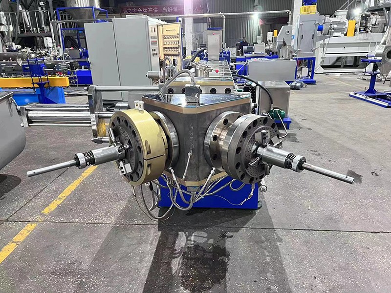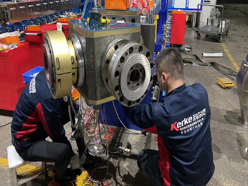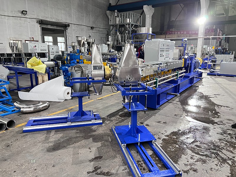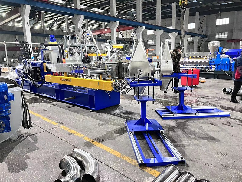 交付 生產(chǎn)KTE-75D三螺桿鹽白填充母粒,一機(jī)雙切式